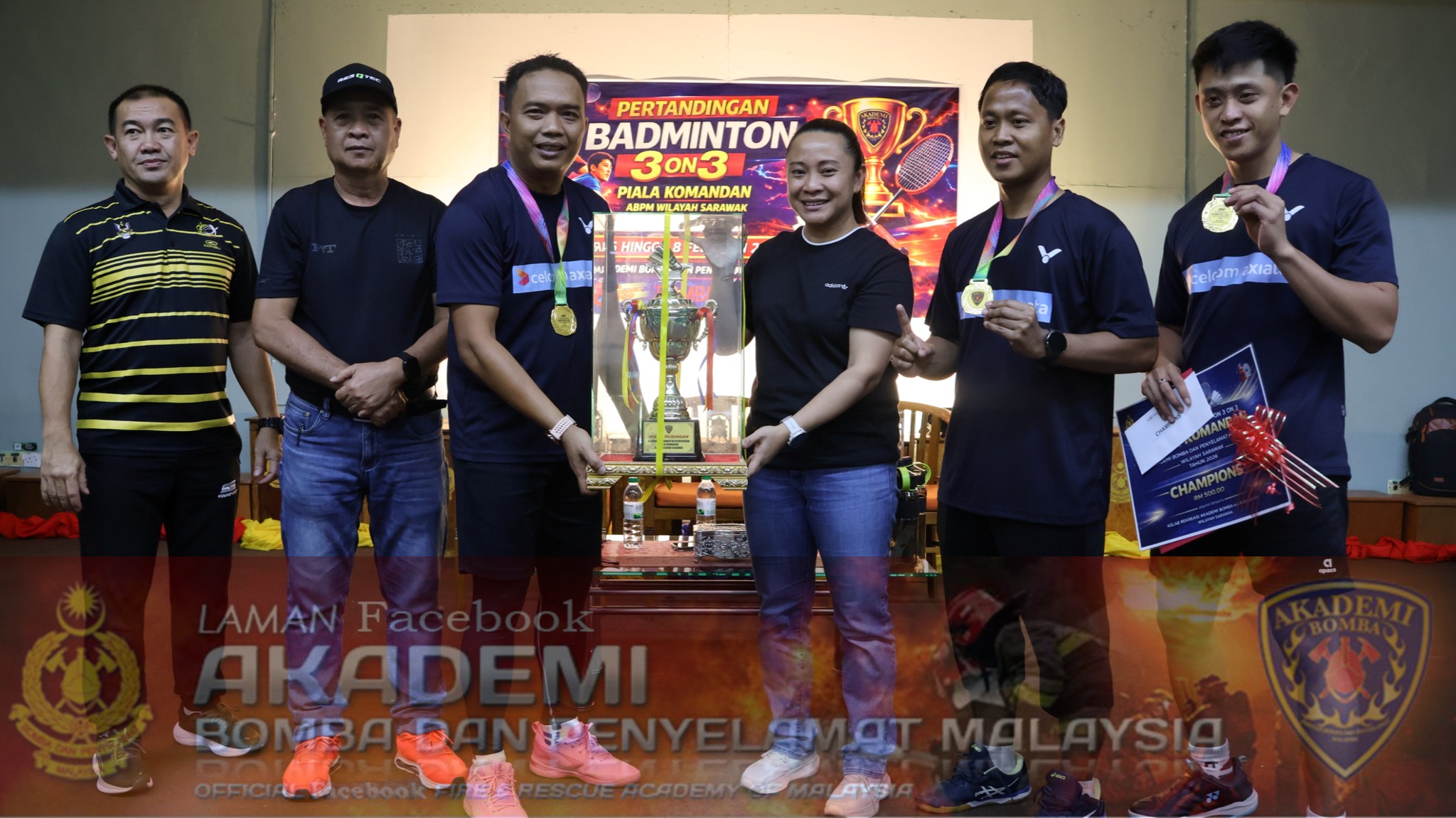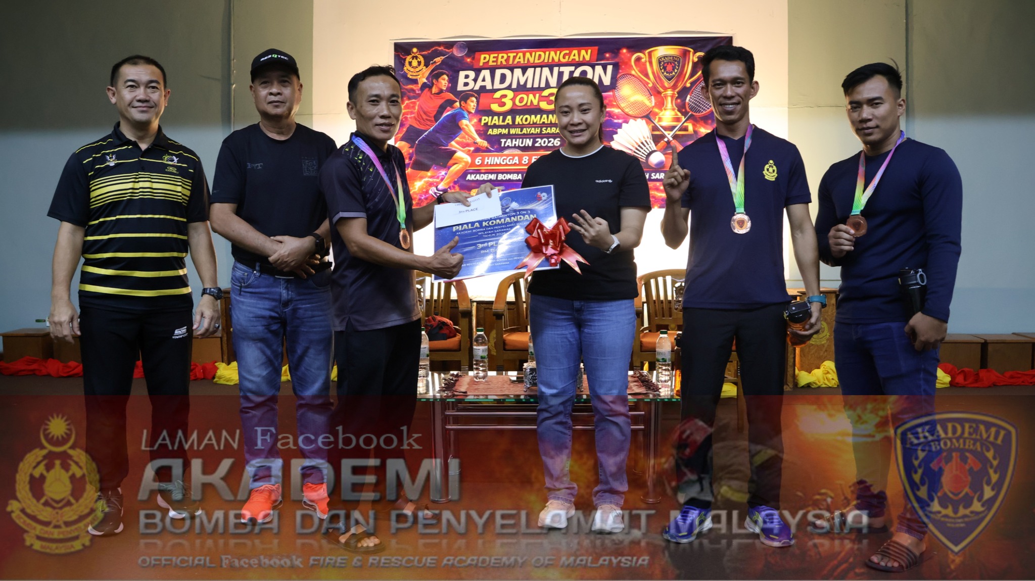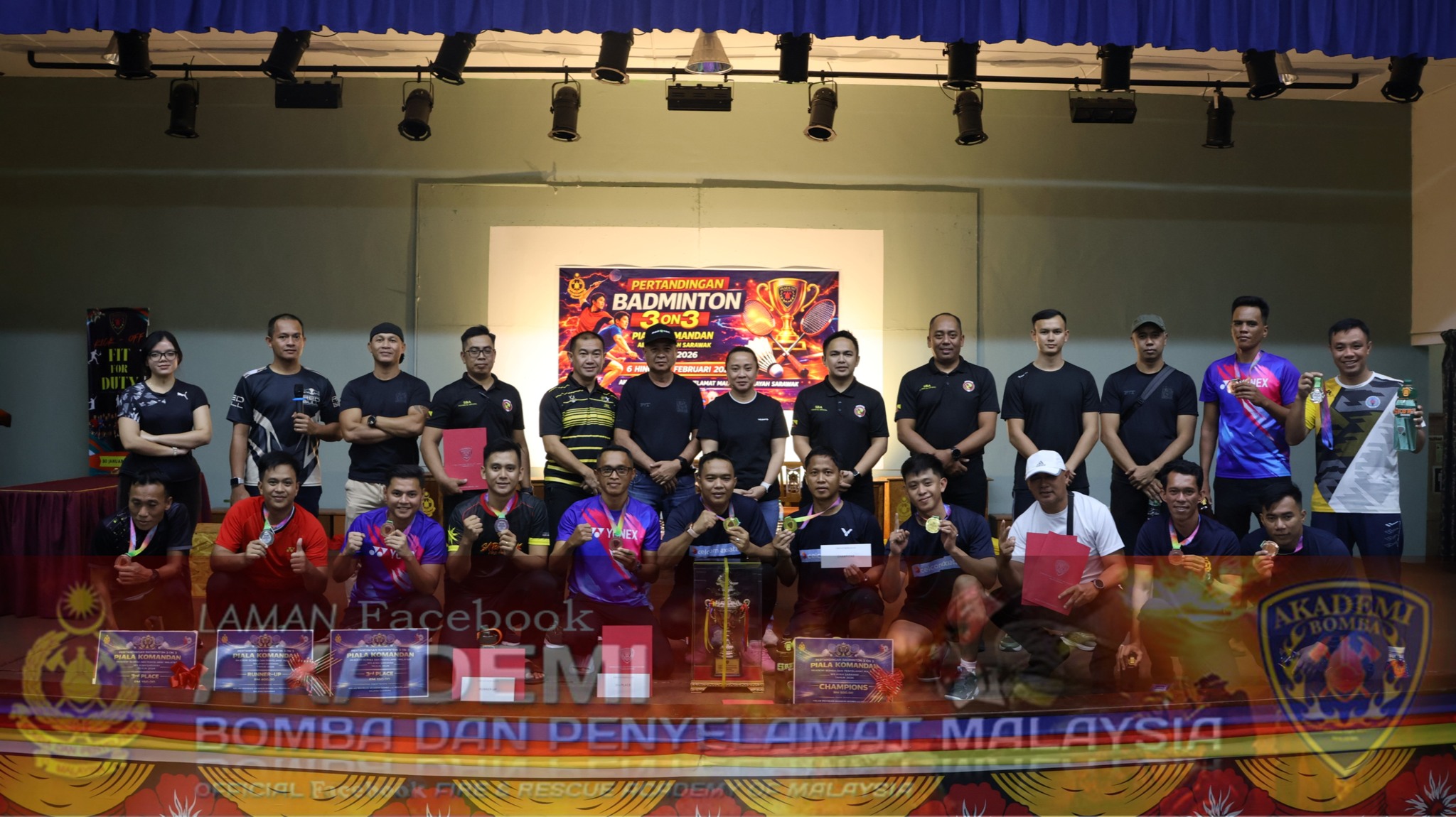 Setinggi-tinggi tahniah dan syabas diucapkan kepada semua pasukan yang telah menyertai Pertandingan Badminton 3 on 3 Piala Komandan Akademi Bomba dan Penyelamat Malaysia, Wilayah Sarawak bagi tahun 2026 yang telah berlangsung pada 7 hingga 8 Februari 2026 bertempat di Akademi Bomba dan Penyelamat Malaysia (ABPM) Wilayah Sarawak.
