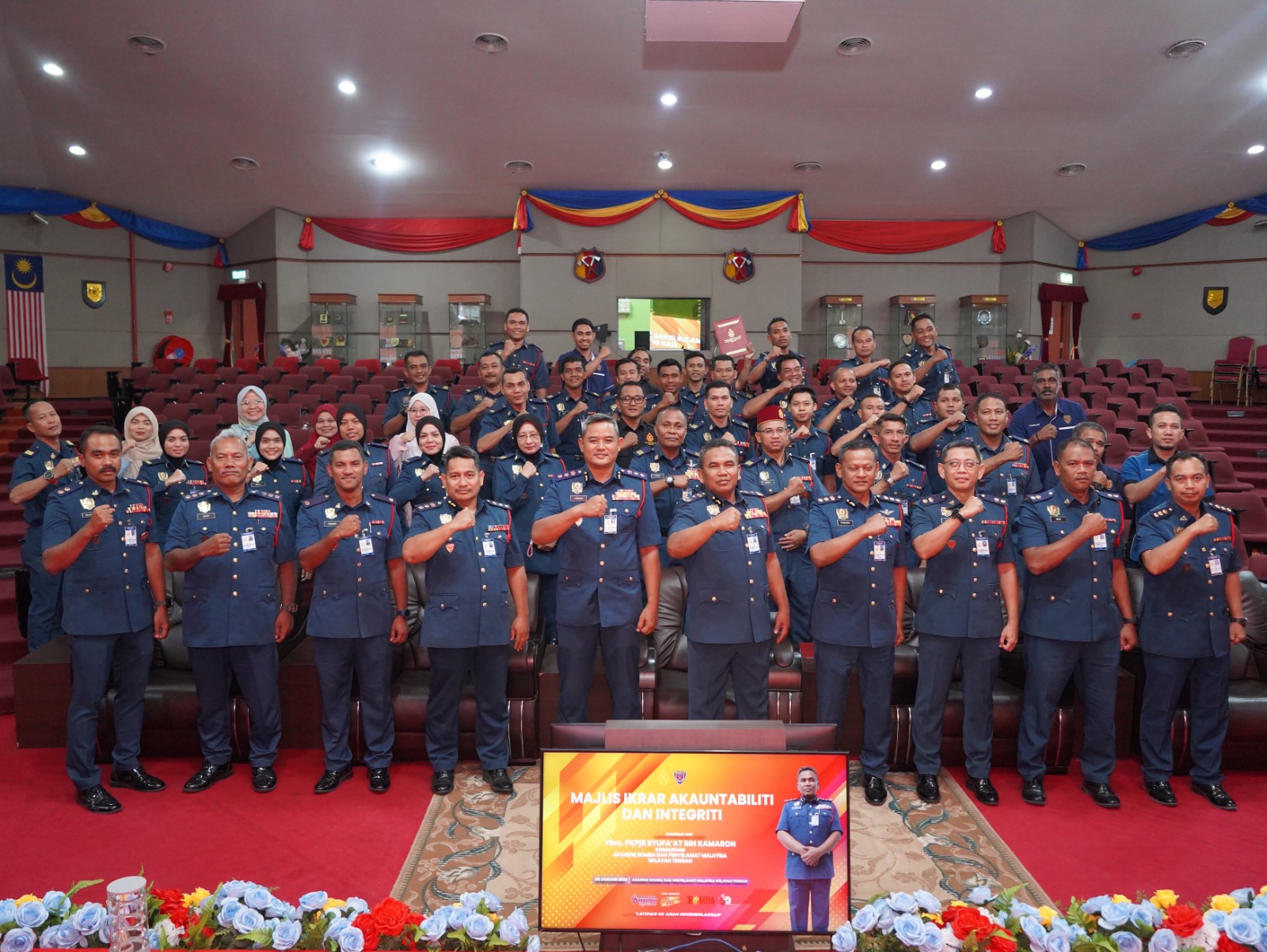 Kuala Kubu Bharu, 30/1/2026 – Akademi Bomba dan Penyelamat Malaysia (ABPM) Wilayah Tengah telah berjaya melaksanakan Majlis Ikrar Akauntabiliti dan Integriti (SKAI) bertempat di Auditorium Haji Mansur pada jam 3.30 petang tadi.