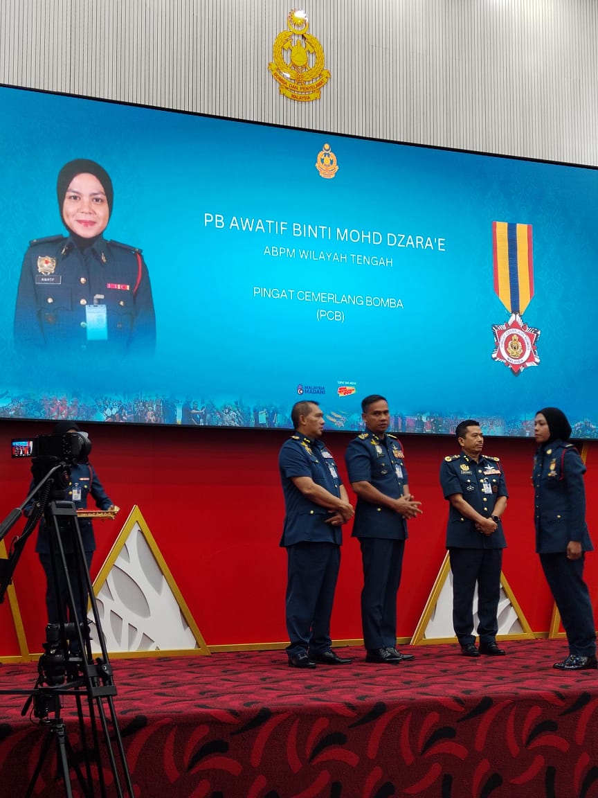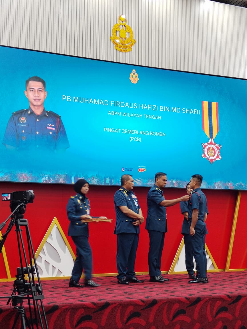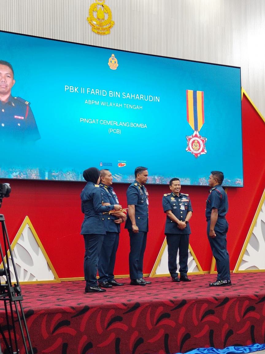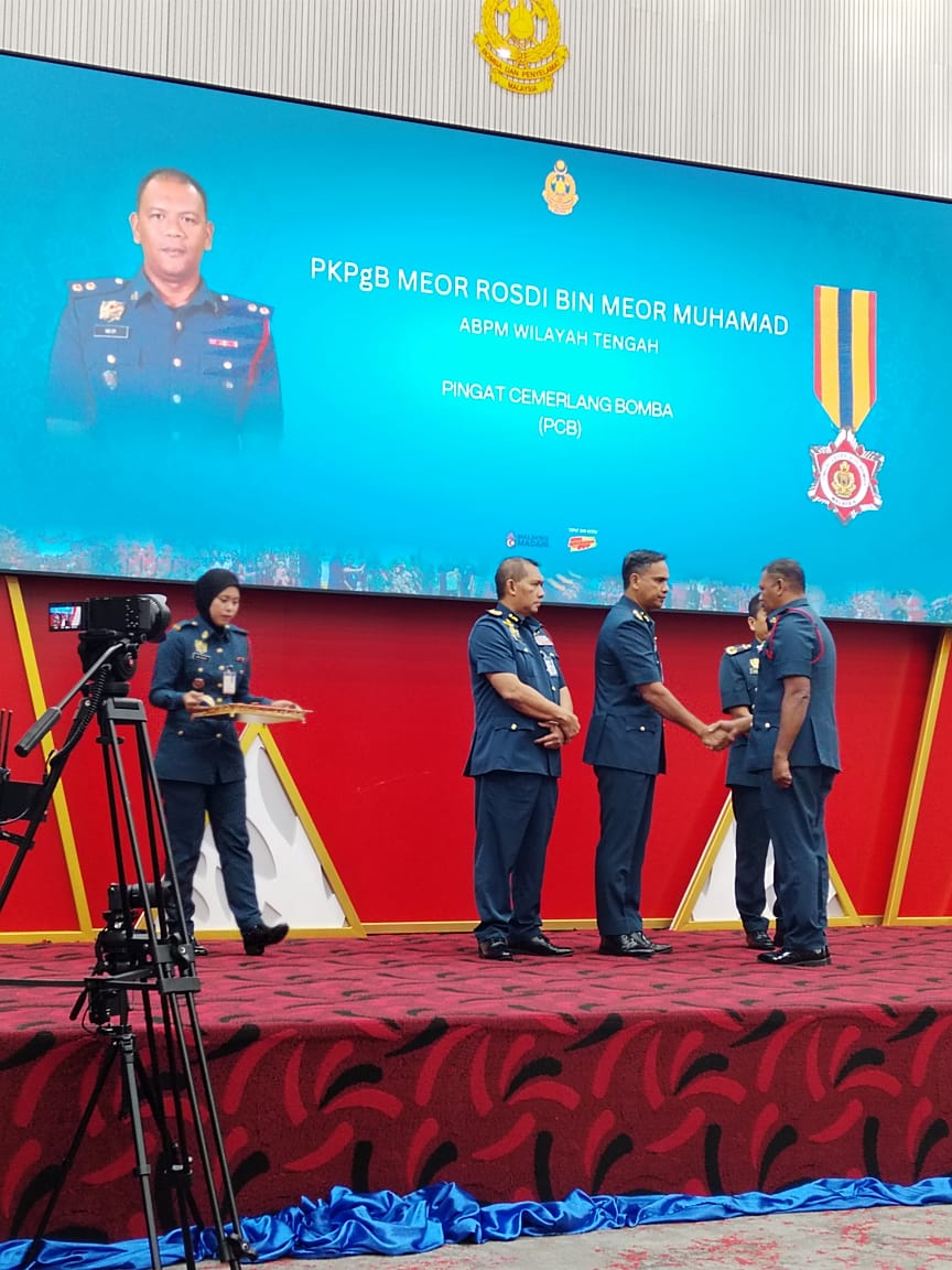 PUTRAJAYA, 4 Nov 2025 – Seramai lima orang pegawai dari Angkatan Bersama Pasukan Bomba (ABPM) Wilayah Tengah telah dianugerahkan Pingat Kebesaran Jabatan dalam satu majlis penuh istiadat yang berlangsung di Ibu Pejabat Jabatan Bomba dan Penyelamat Malaysia (JBPM) di sini, pagi tadi.